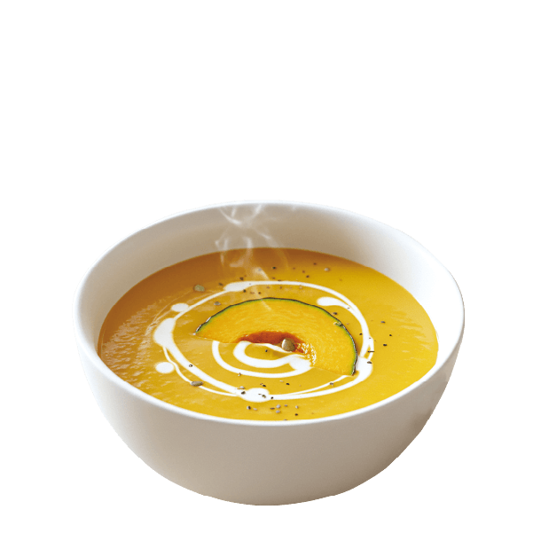 完熟かぼちゃのやさしい甘さとクリーミーな口あたりが魅力のスープ。自然な甘味で満足感がありながら、脂質は控えめ。デザート感覚でも楽しめる万能フレーバーです。心をほっと癒す一杯として、頑張る自分へのご褒美にも。