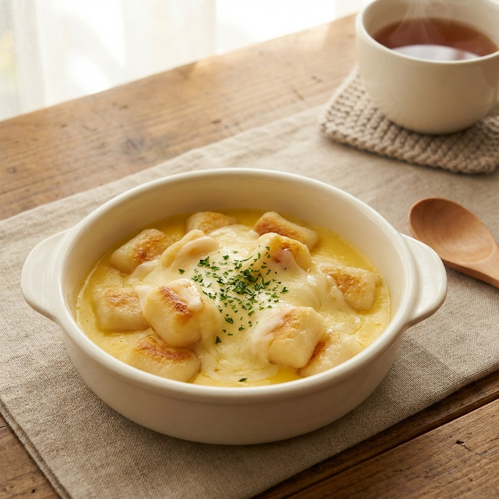 とろ〜り溶けたチーズとお餅のもちもち食感がクセになる一品。