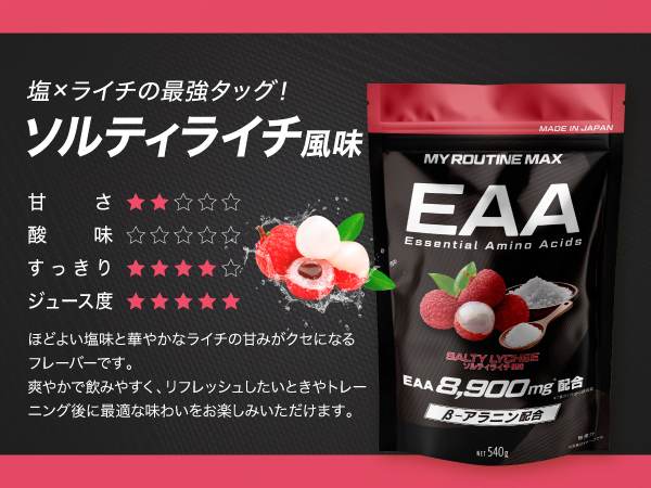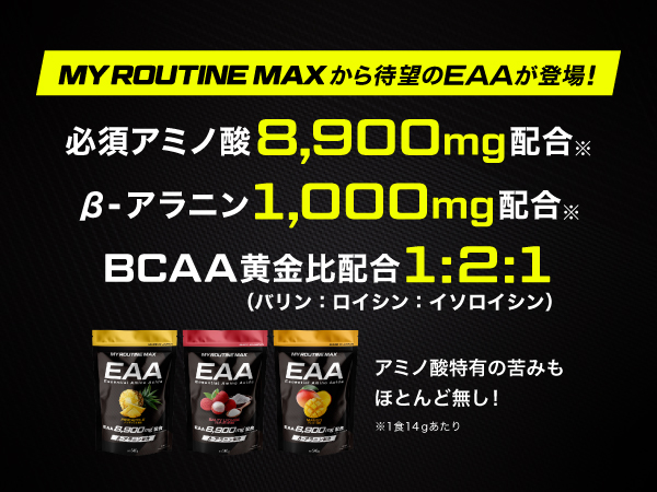 EAA成分を1食分摂取量あたり8,900mg配合。運動時のパフォーマンスを高めたい方におすすめです。