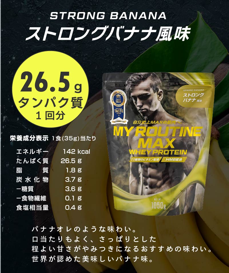 最強※1スペックのタンパク質高配合プロテイン。1食あたりのたんぱく質量に、とにかくこだわりました。タンパク質合成を高めるためには、20~25gのたんぱく質摂取が実は必要。マイルーティーンマックスは、全味MAX25グラム以上の摂取量を追求しました。なりたい身体をともに目指し、自分を高めて、打ち勝つ強さ※2と身体作りを全力でサポートします。