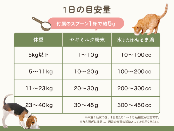※与えすぎに注意をし、通常の食事の補助としてご使用ください。(付属のスプーン1杯で約5gです。)