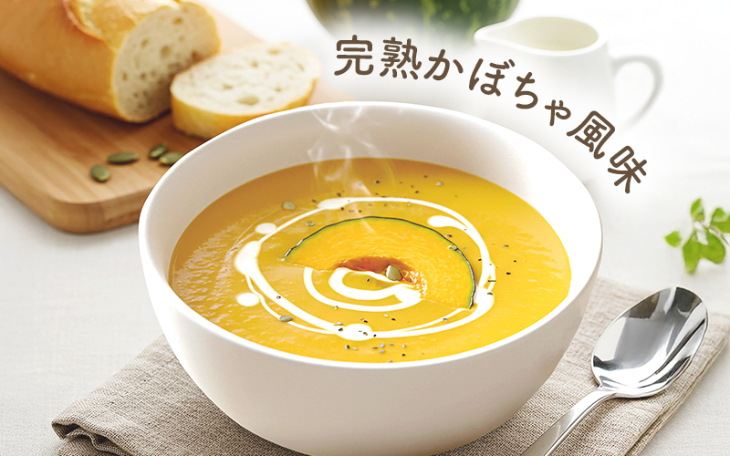 ■完熟かぼちゃ風味:エネルギー141kcal、たんぱく質20.2g、脂質1.0g、炭水化物13.5g(糖質12.3g、食物繊維1.2g)、食塩相当量1.5g ●たんぱく質(無水換算値):20.6g