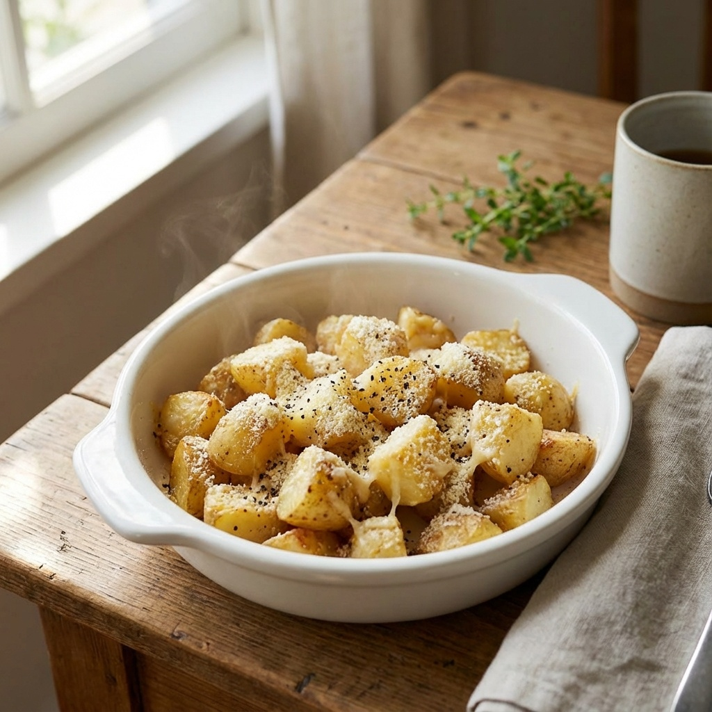チーズとコンソメの香ばしさが食欲をそそる、ほくほくポテトレシピ。